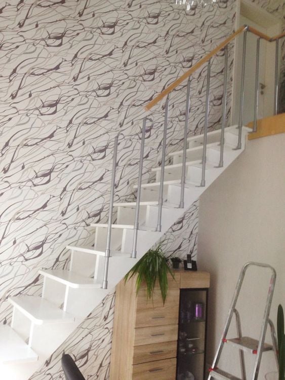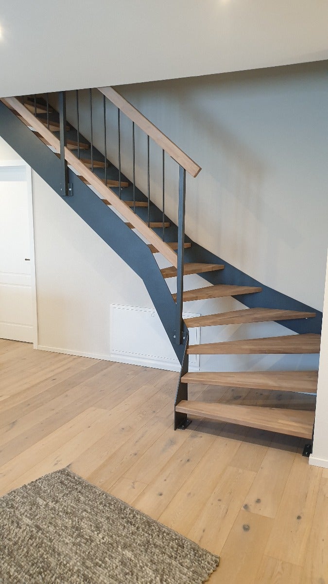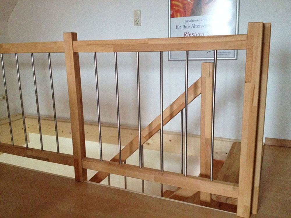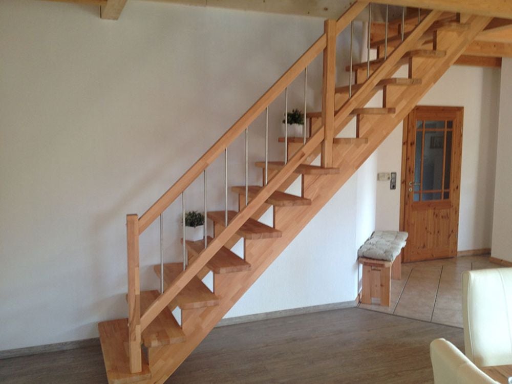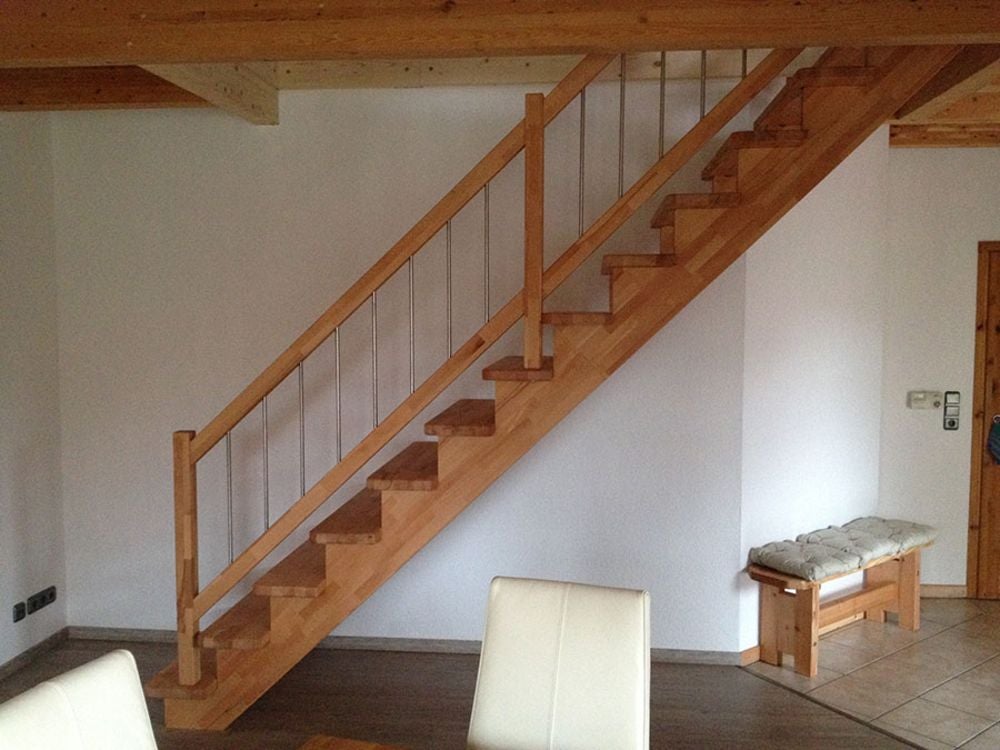 Massivholztreppe Lindos gerade mit Holz-Edelstahlgeländer (Veredelungsset 03)