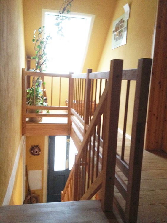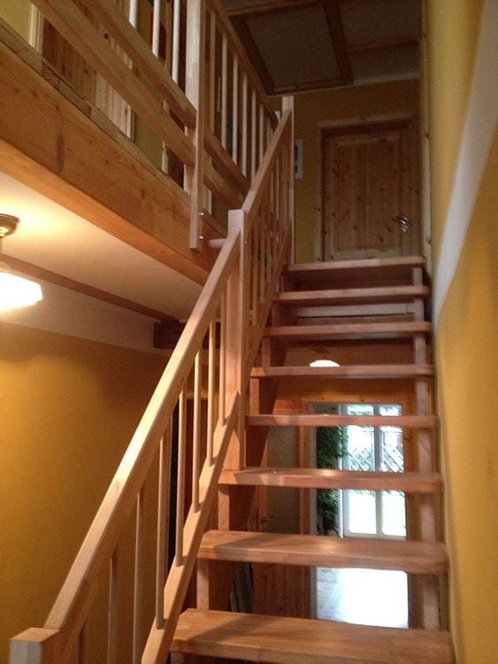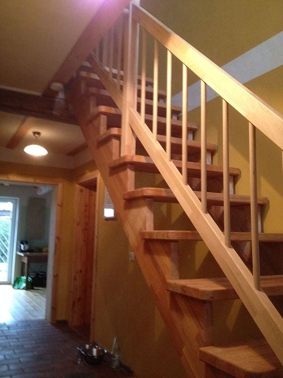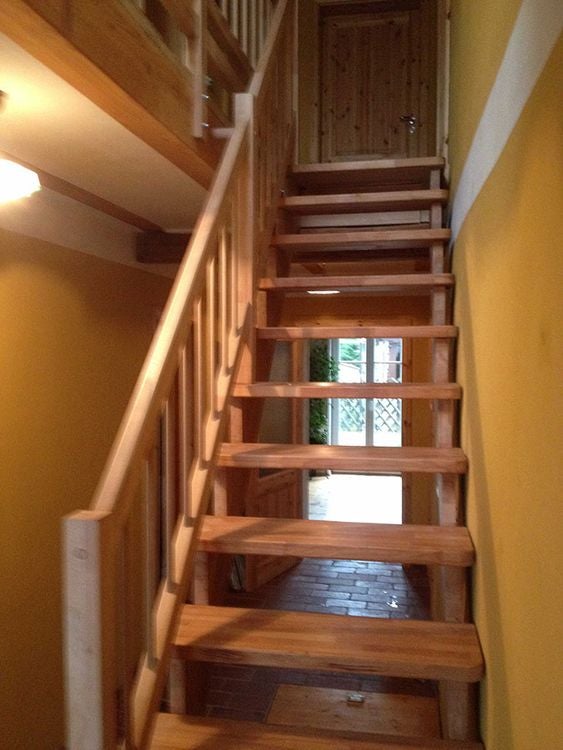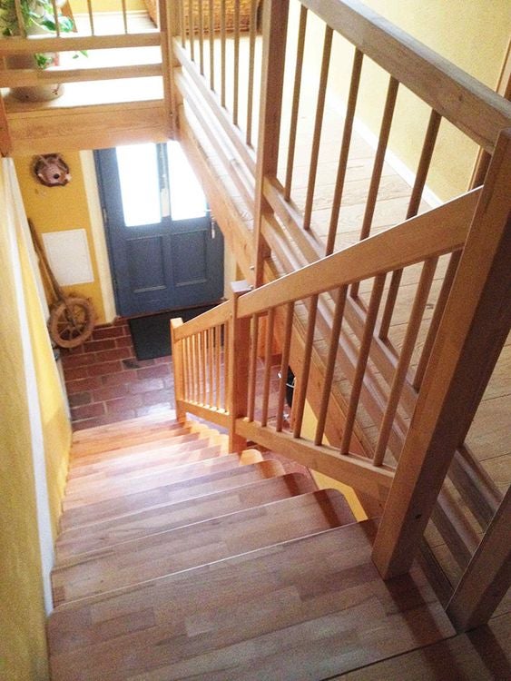 Massivholztreppe Lindos gerade mit Holzhandlauf (Veredelungsset 01)