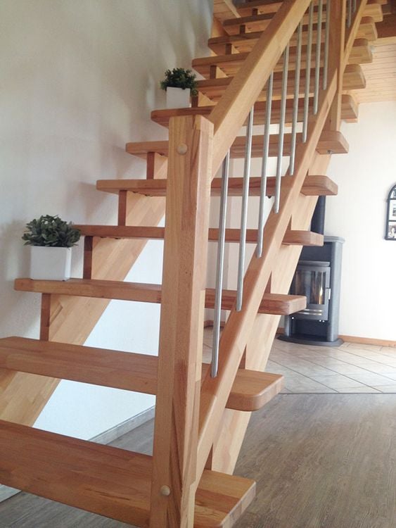 Massivholztreppe Samos mit Holz-Edelstahlgeländer ( Veredelungsset 04)