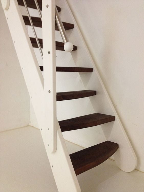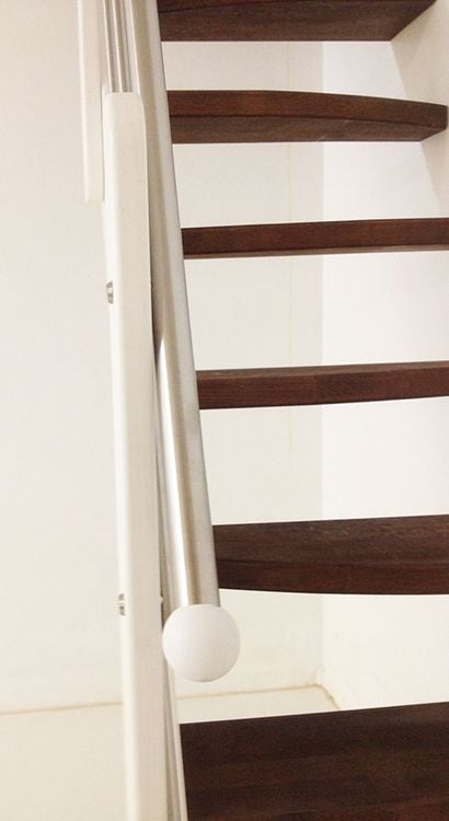 Massivholztreppe Lindos 1/4 gewendelt (Veredelungsset 04)